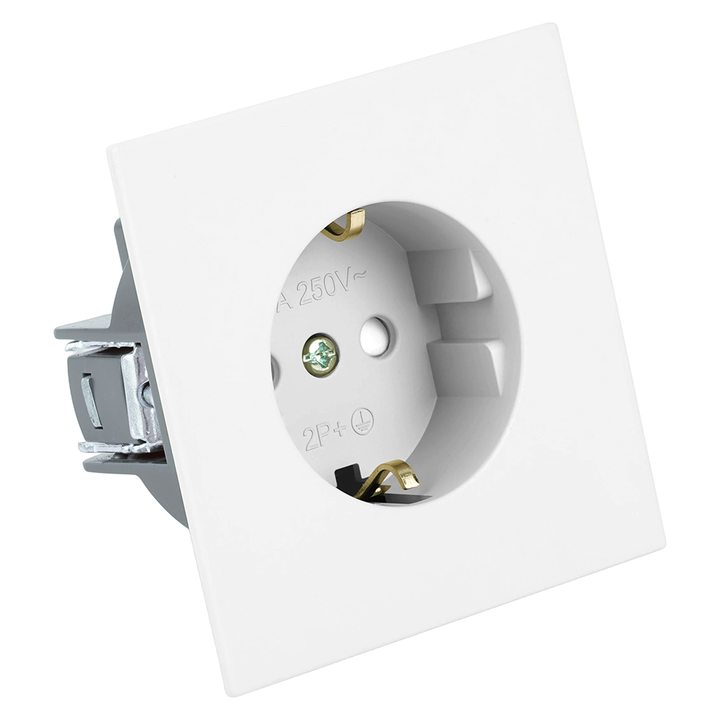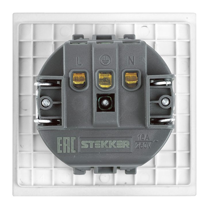 Розетка 1-местная с защитной шторкой с/з (механизм), STEKKER, 250В, 16А, серия Мия, RST16-3110-01, белая магнолия