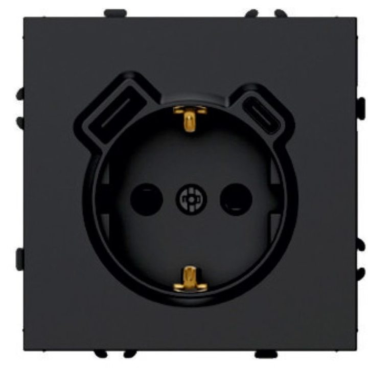 Розетка 1-местная з/ш с/з 16А + USB + Type C (механизм), Stekker, 250В, 20W, серия Эмили, черный уголь, soft-touch, RST16-5119-05