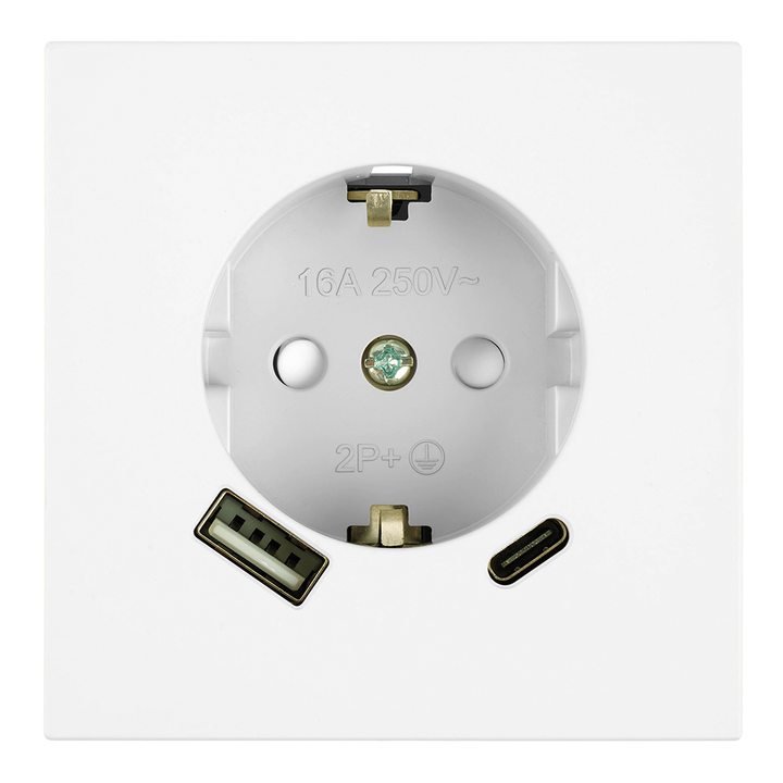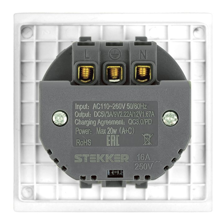 Розетка 1-местная з/ш с/з 16А + USB + Type C (механизм), STEKKER, 250В, 20W, серия Мия, RST16-3119-01, белая магнолия