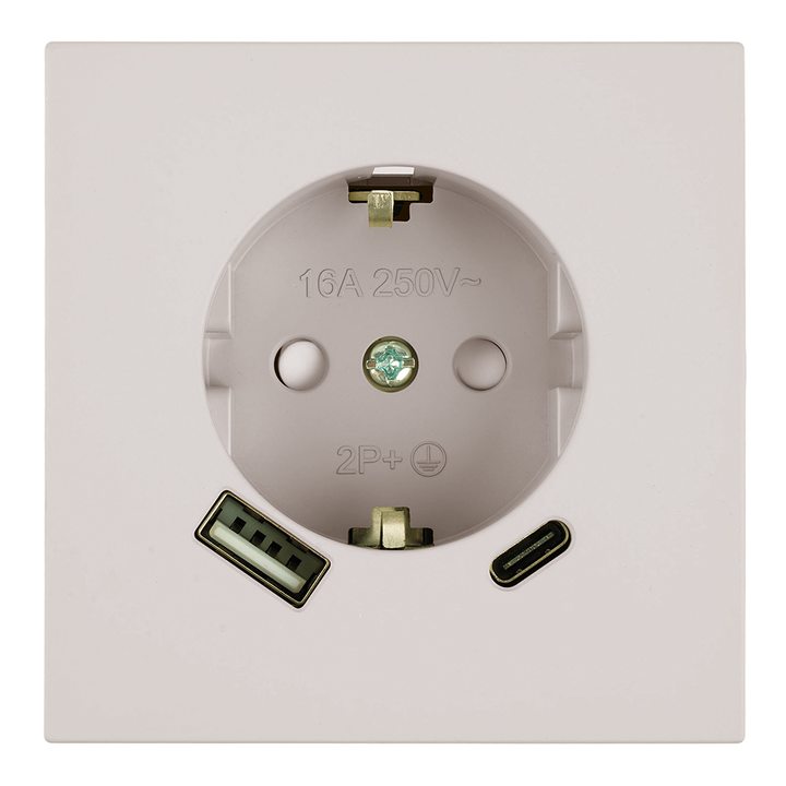 Розетка 1-местная з/ш с/з 16А + USB + Type C (механизм), STEKKER, 250В, 20W, серия Мия, RST16-3119-08, пудровый жемчуг