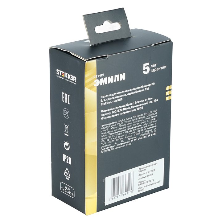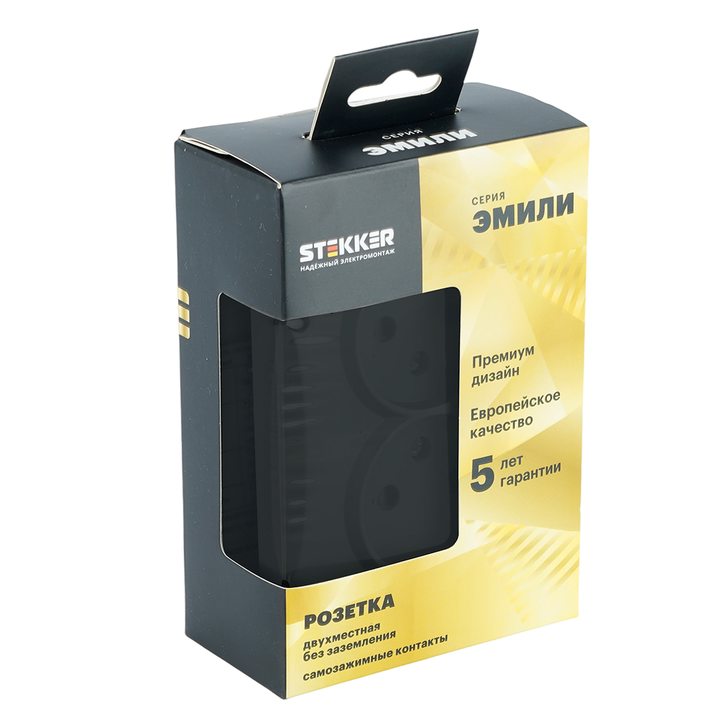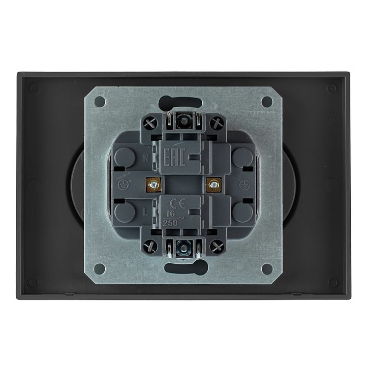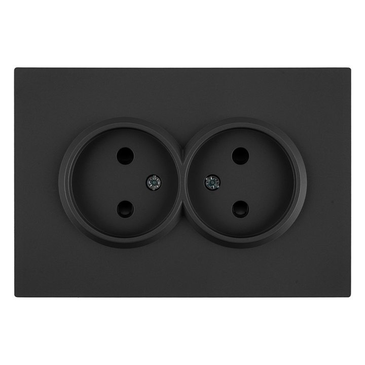 Розетка 2-местная с з/ш, б/з, СЗК, STEKKER, 250В, 16А, серия Эмили, RST16-5116-05ZK, черный уголь, soft touch