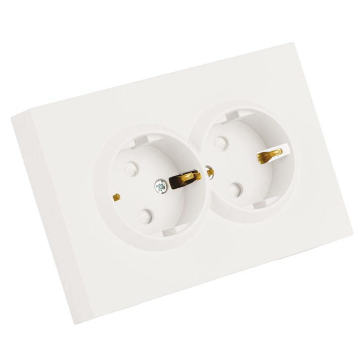 Розетка 2-местная с з/ш, с/з, СЗК, STEKKER, 250В, 16А, серия Эмили, RST16-5114-01ZK, белый фарфор, soft touch