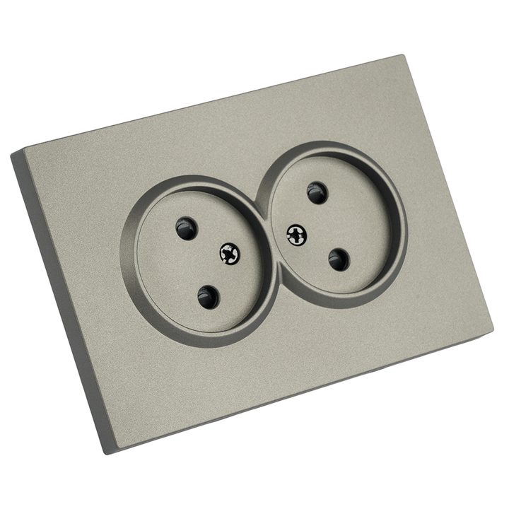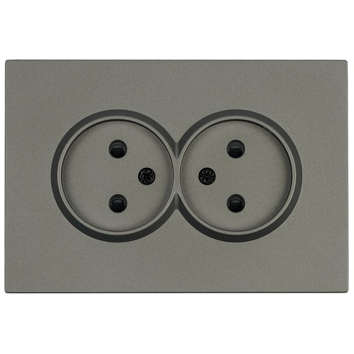 Розетка 2-местная с защитной шторкой, STEKKER, б/з, 250В, 16А, серия Эмили, RST10-5116-09, антрацит, soft touch