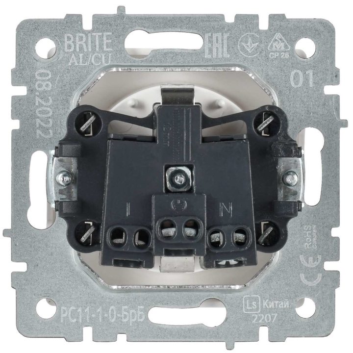 Розетка BRITE РС11-1-0-БрБ 16А с заземл. без защ. шторки бел. IEK BR-R11-16-K01
