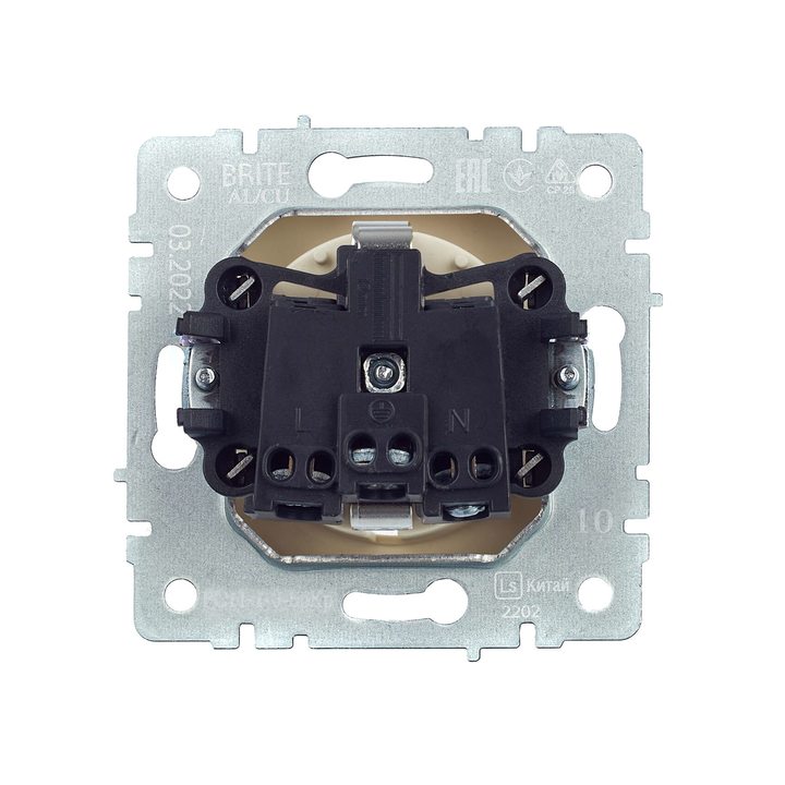 Розетка BRITE РС11-1-0-БрКр 16А с заземл. без защ. шторки беж. IEK BR-R11-16-K10