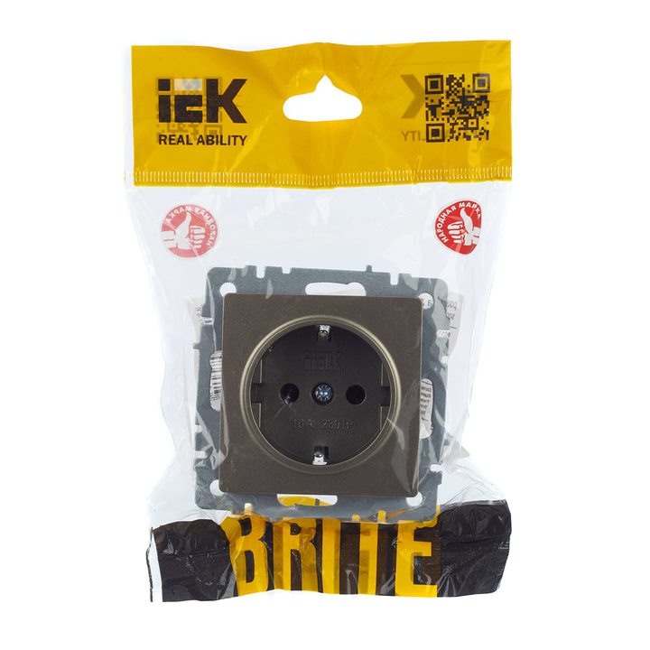 Розетка BRITE РС11-1-0-БрШ 16А с заземл. без защ. шторки шампань IEK BR-R11-16-K37