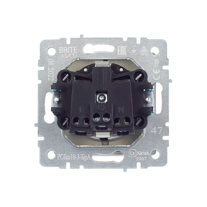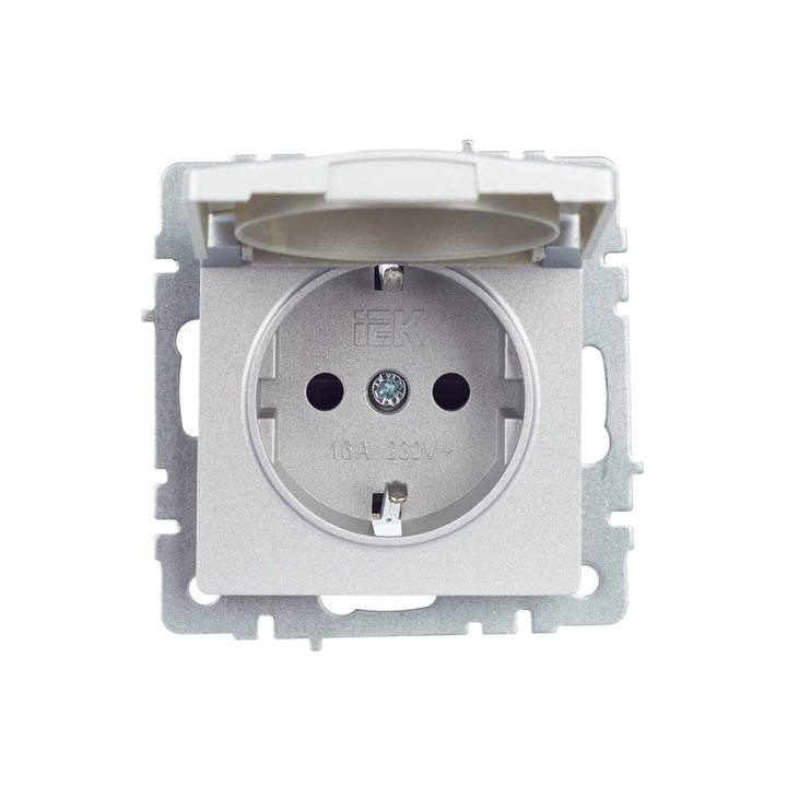 Розетка BRITE РСбш10-3-БрА 16А IP20 с заземл. защ. шторки с крышкой алюм. IEK BR-R16-16-K47
