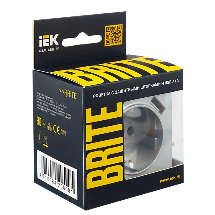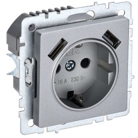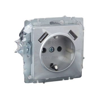 Розетка BRITE РЮш10-1-БрА 16А с USB A+A 2.1А с заземл. защ. шторки алюм. IEK BR-R14-16-U21-D21-K47