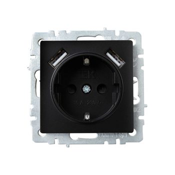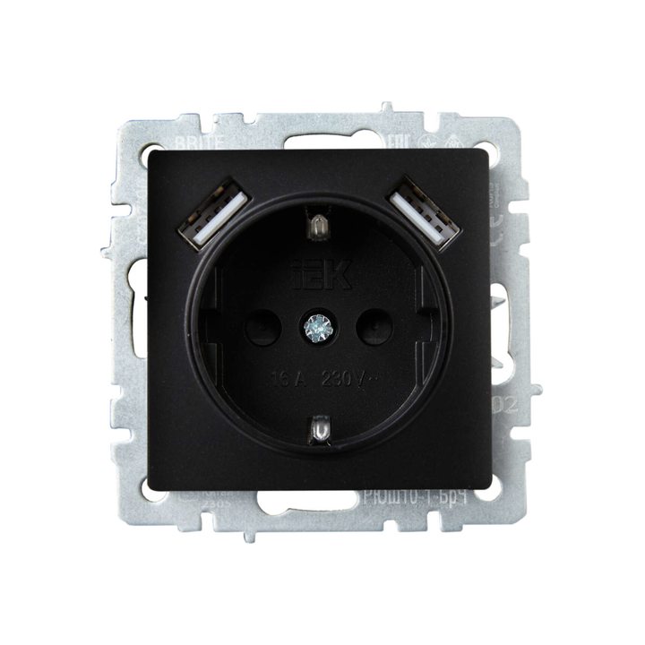 Розетка BRITE РЮш10-1-БрЧ 16А с USB A+A 2.1А с заземл. защ. шторки черн. IEK BR-R14-16-U21-D21-K02