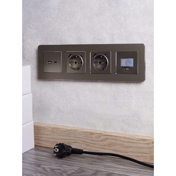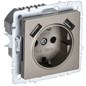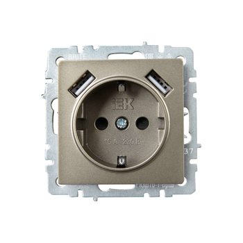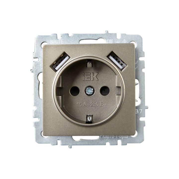 Розетка BRITE РЮш10-1-БрШ 16А с USB A+A 2.1А с заземл. защ. шторки шампань IEK BR-R14-16-U21-D21-K37