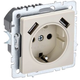 Розетка BRITE РЮш10-2-БрКр 16А с USB A+A 3.1А с заземл. защ. шторки беж. IEK BR-R14-16-U21-D31-K10