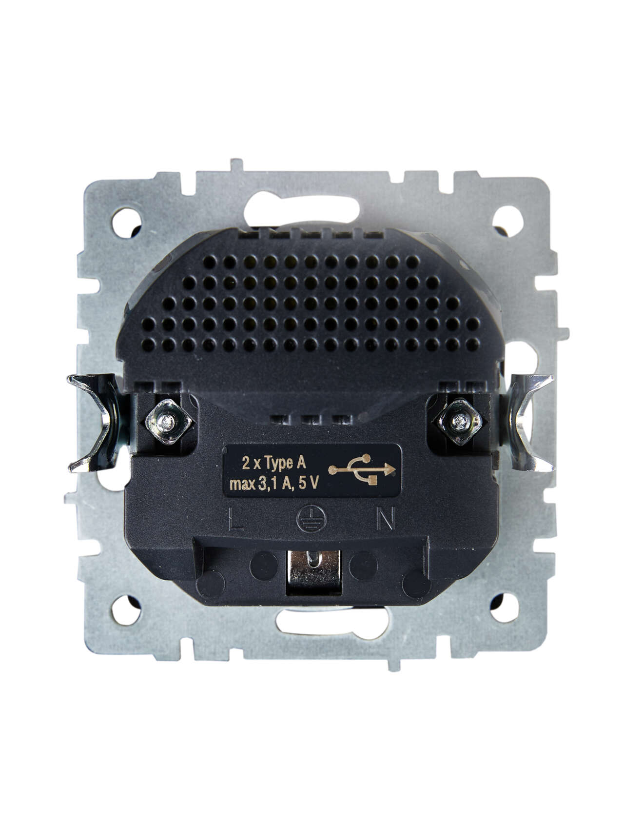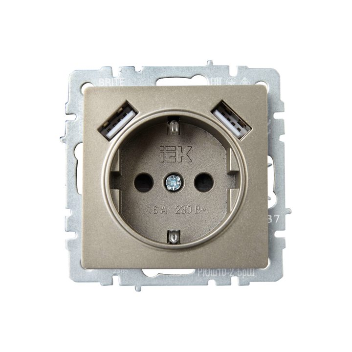 Розетка BRITE РЮш10-2-БрШ 16А с USB A+A 3.1А с заземл. защ. шторки шампань IEK BR-R14-16-U21-D31-K37