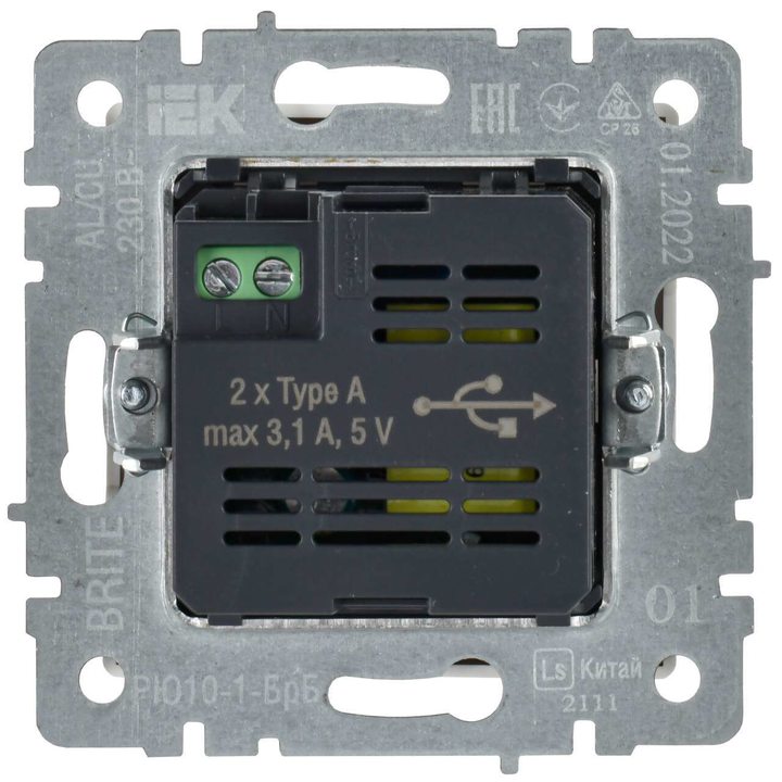 Розетка BRITE USB A+A 3.1А РЮ10-1-БрБ бел. IEK BR-U21-D31-K01