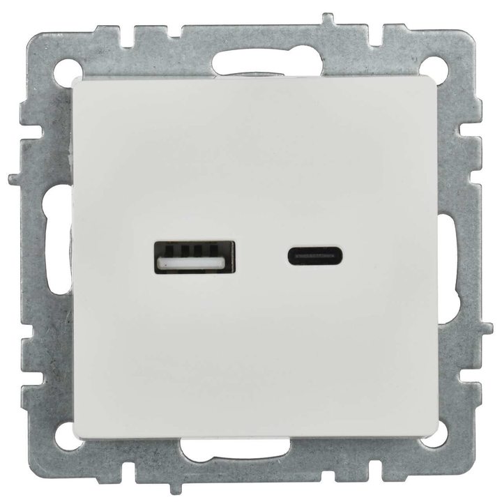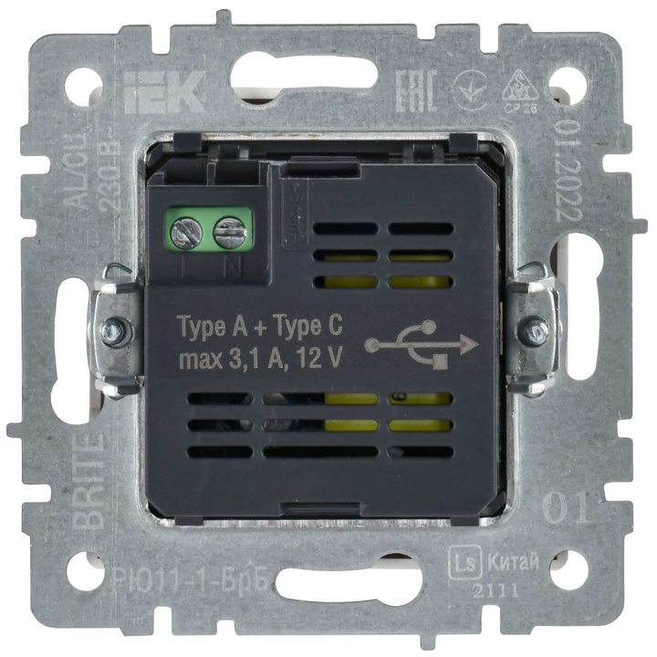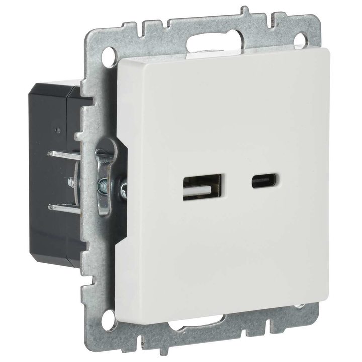 Розетка BRITE USB A+C 18Вт РЮ11-1-БрБ бел. IEK BR-U22-018-K01
