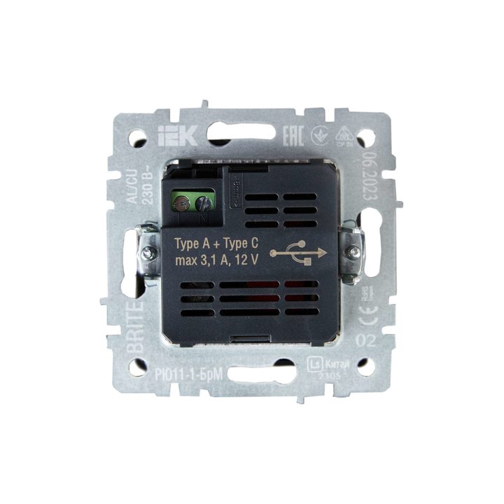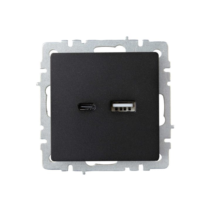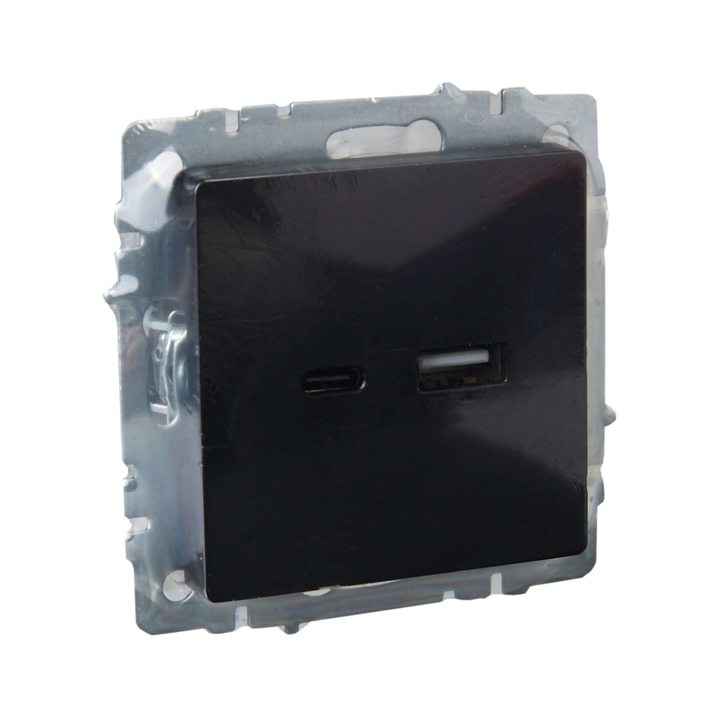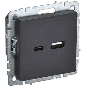 Розетка BRITE USB A+C 18Вт РЮ11-1-БрЧ черн. IEK BR-U22-018-K02