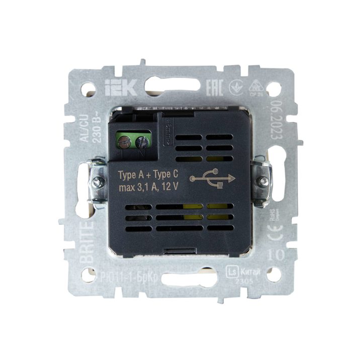 Розетка BRITE USB A+C 18Вт РЮ11-1-БрКр беж. IEK BR-U22-018-K10