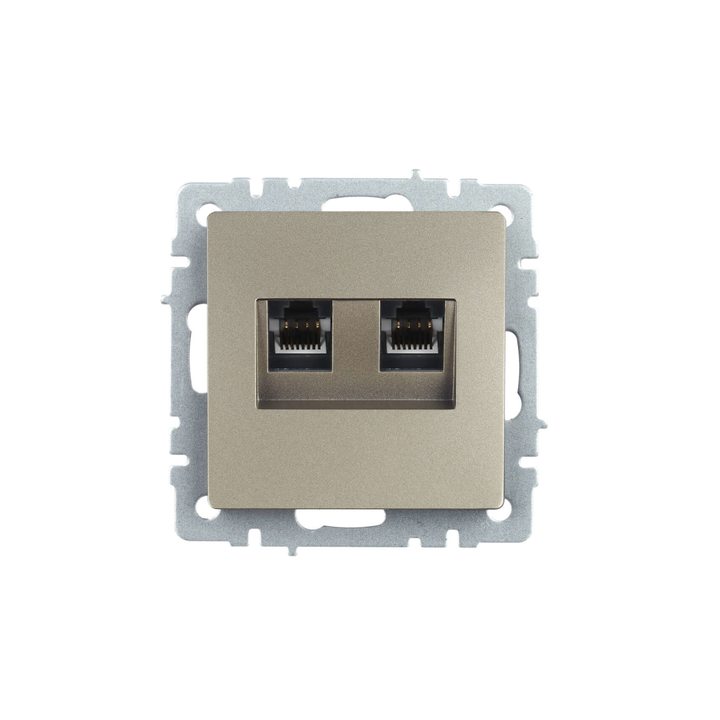Розетка компьютерная двойная СП RJ45 кат.5E BRITE РК10-2-БрШ шампань IEK BR-K20-1-K37