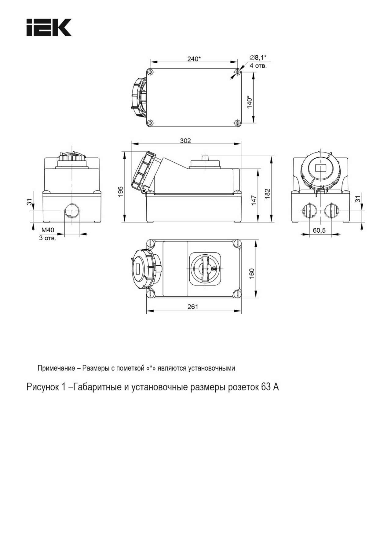 Розетка с механической блокировкой ССИ-835 63А-6ч/380В 3P+PE+N IP67 IEK