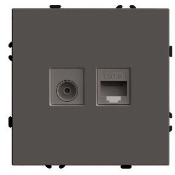 Розетка TV + компьютерная RJ-45 (механизм), STEKKER, серия Эмили, RST00-5106-09, антрацит, soft touch