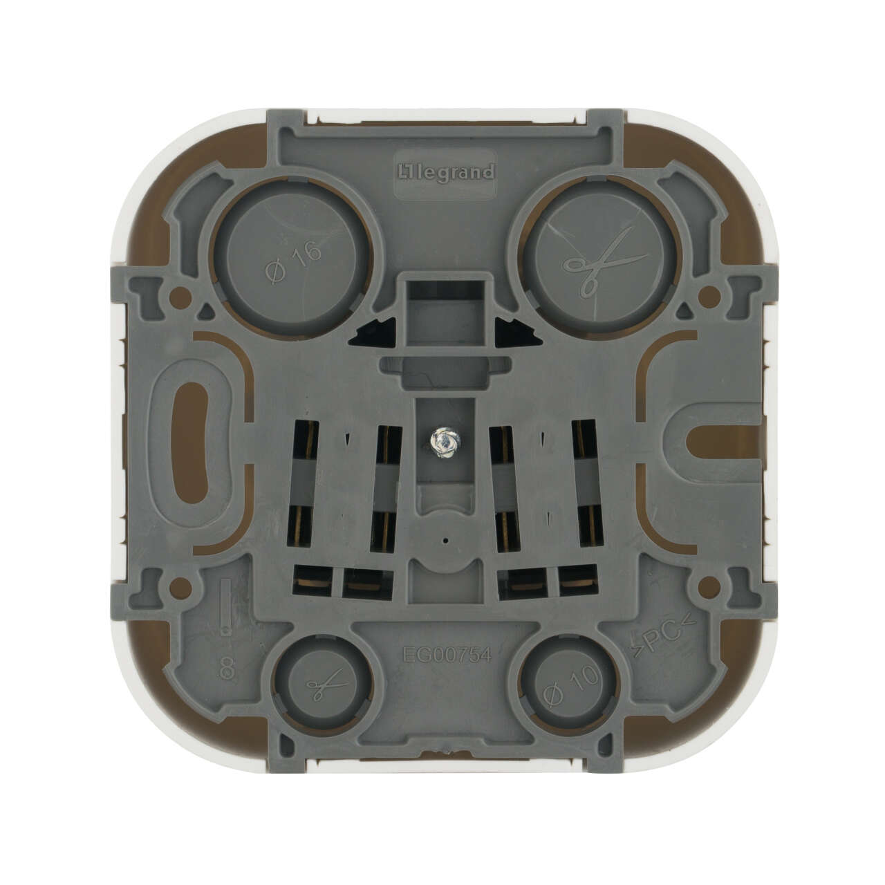 - Перфорация на корпусе для безошибочного вырезания отверстий при монтаже открытой проводки.
