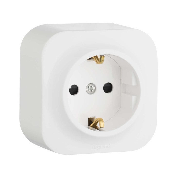 Розетка 1-м ОП Quteo 16А IP20 250В 2P+E с заземл. защ. шторки бел. Leg 782220
