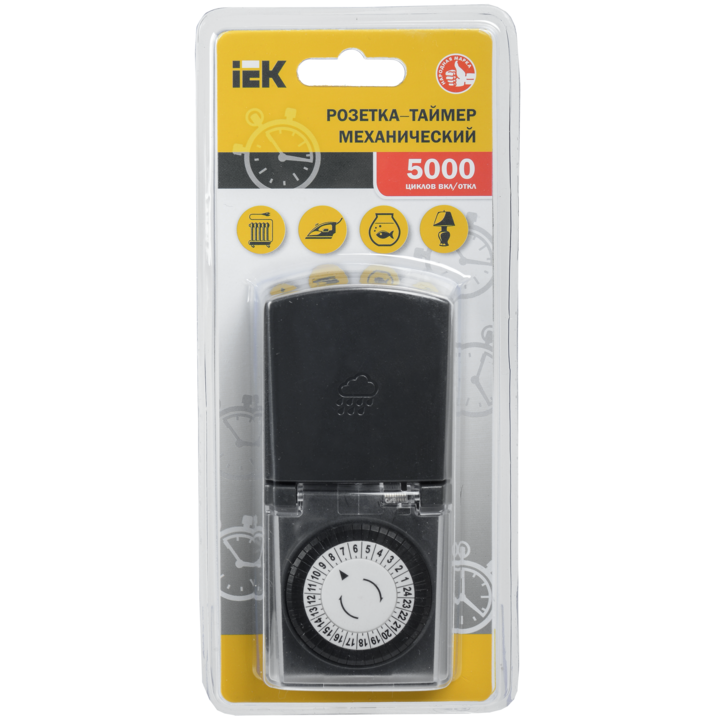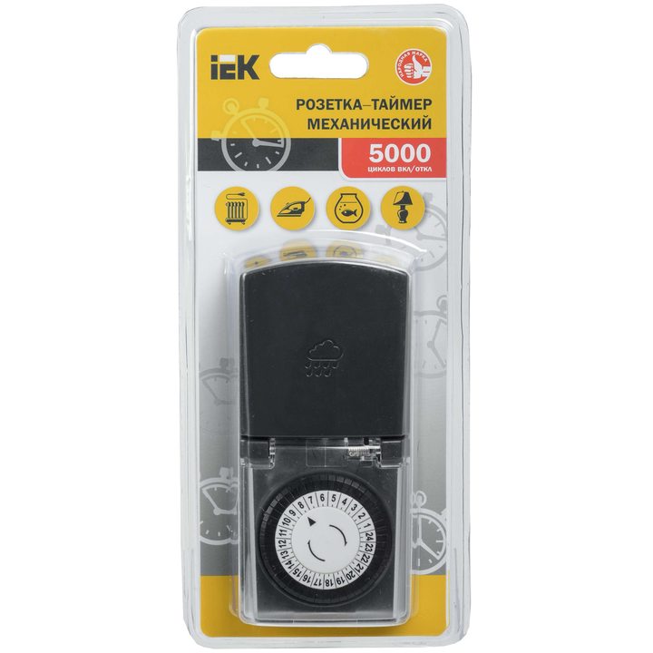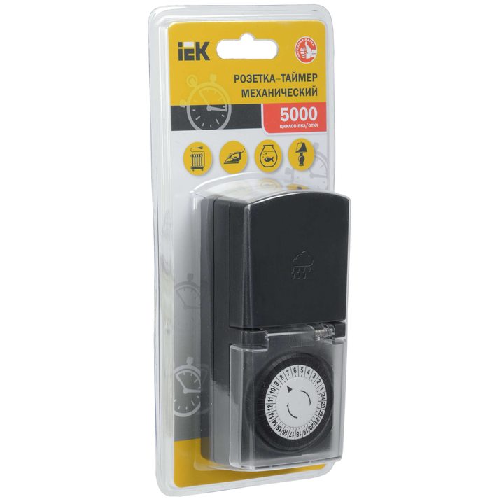 РТМ-4 Розетка-таймер механический 30мин 24ч 48on/off 16А IP44 черная IEK