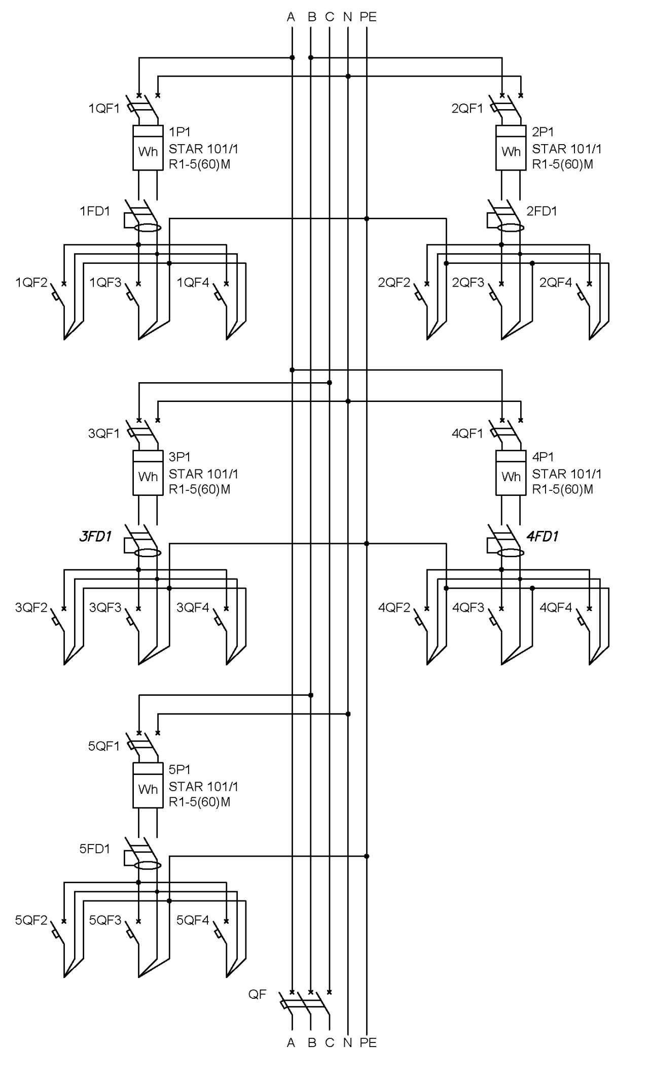 Щит этажный ЩЭ-3503 УХЛ3 с отделением для слаботочных устройств 5 квартир выключатель автоматический вводной 3Р 100А отходящие на каждую квартиру УЗО 2Р 1х50А 30мА выключатели автоматические 2Р 1х40А 1Р 1х16А 2х25А IEK
