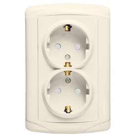 Мадрид Розетка 2-мест. 16А с заземлением с защ. штор. бежевая EKF