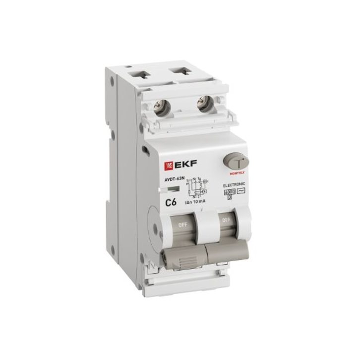 Диф. автомат АВДТ-63N 1P+N 6А (C) 10мА (AC) эл 6кА PROXIMA EKF