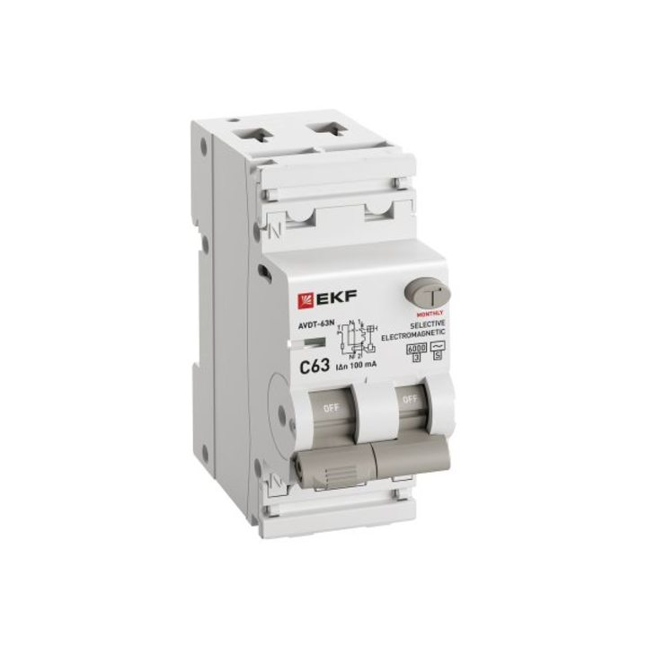Диф. автомат АВДТ-63N 1P+N 63А (C) 100мА (AC-S) эл-мех 6кА PROXIMA EKF