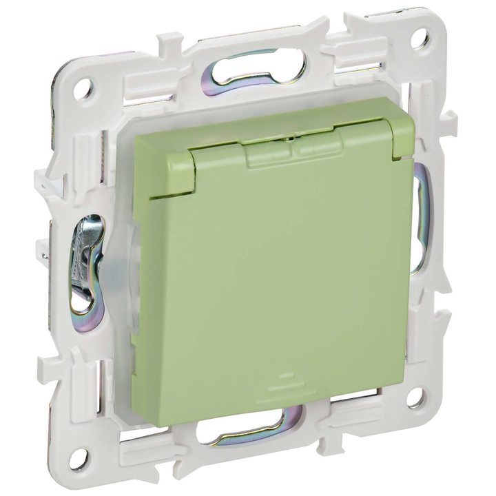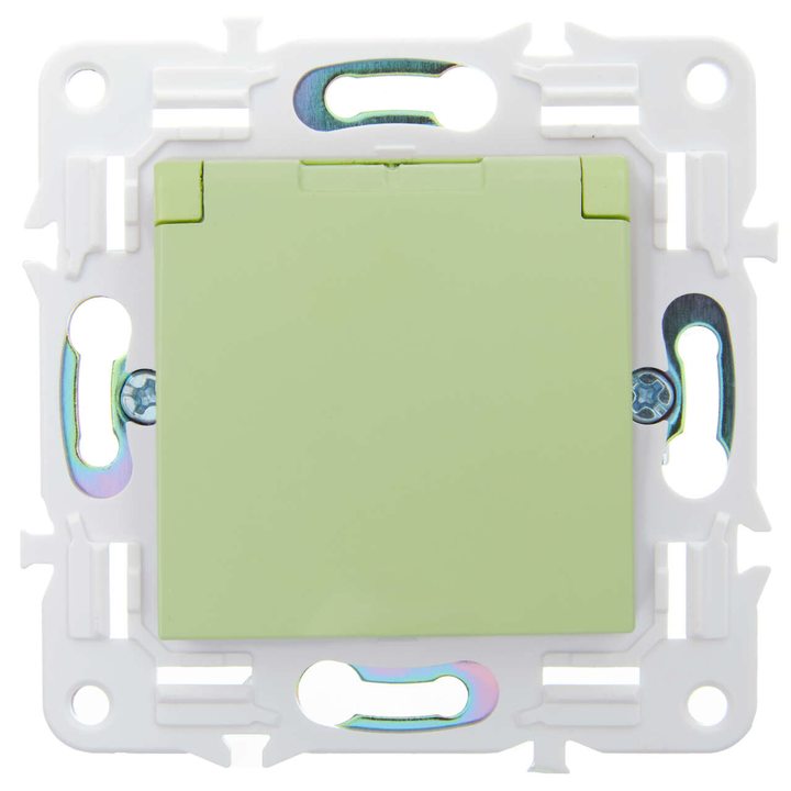 SKANDY Розетка 1-местная с заземлением с защитными шторками и крышкой 16А IP44 SK-R11G мятный IEK