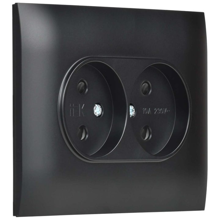 SKANDY Розетка 2-местная без заземления с защитными шторками 10А в сборе SK-R09Bl черный IEK