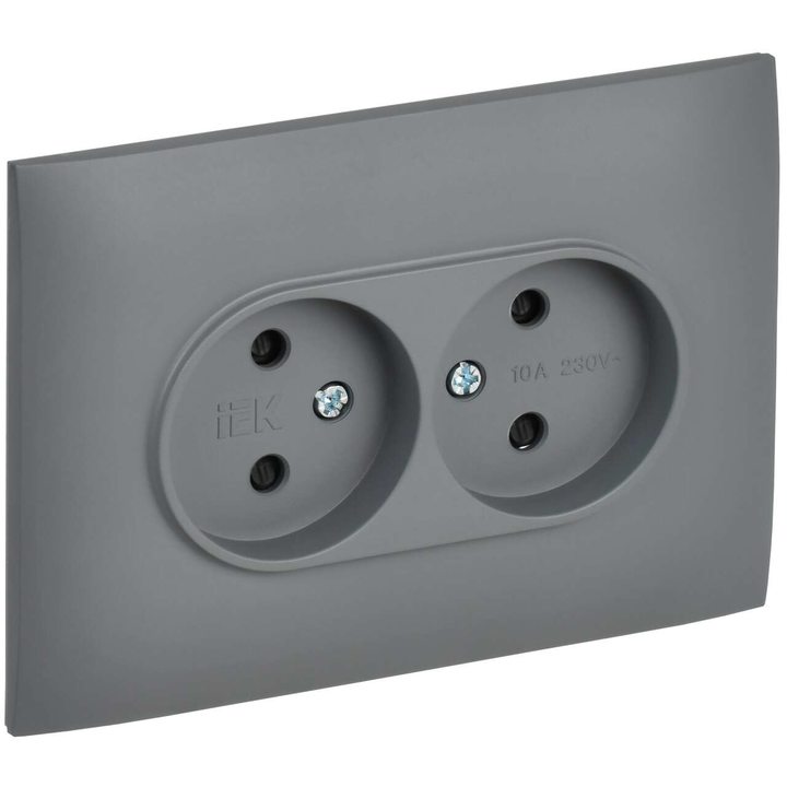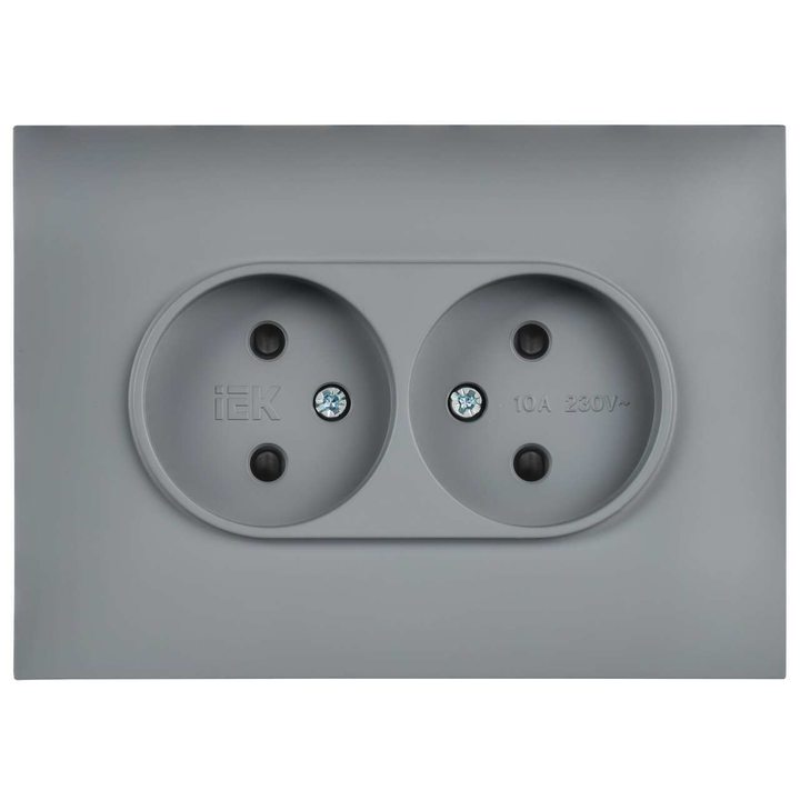 SKANDY Розетка 2-местная без заземления с защитными шторками 10А в сборе SK-R09Gr серый IEK