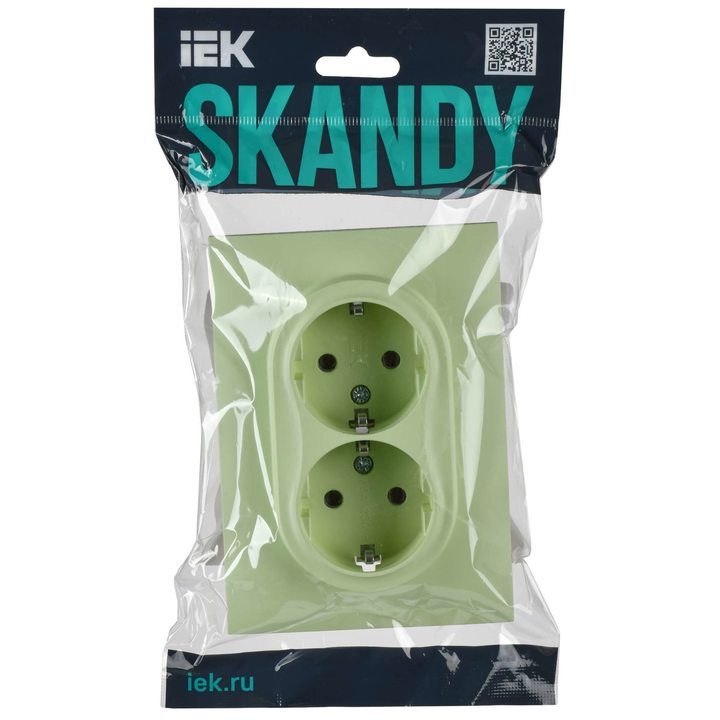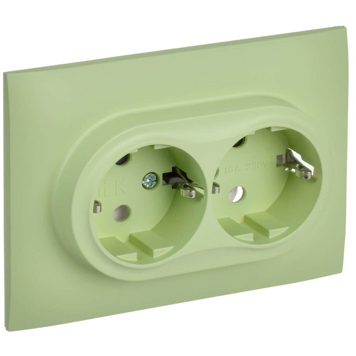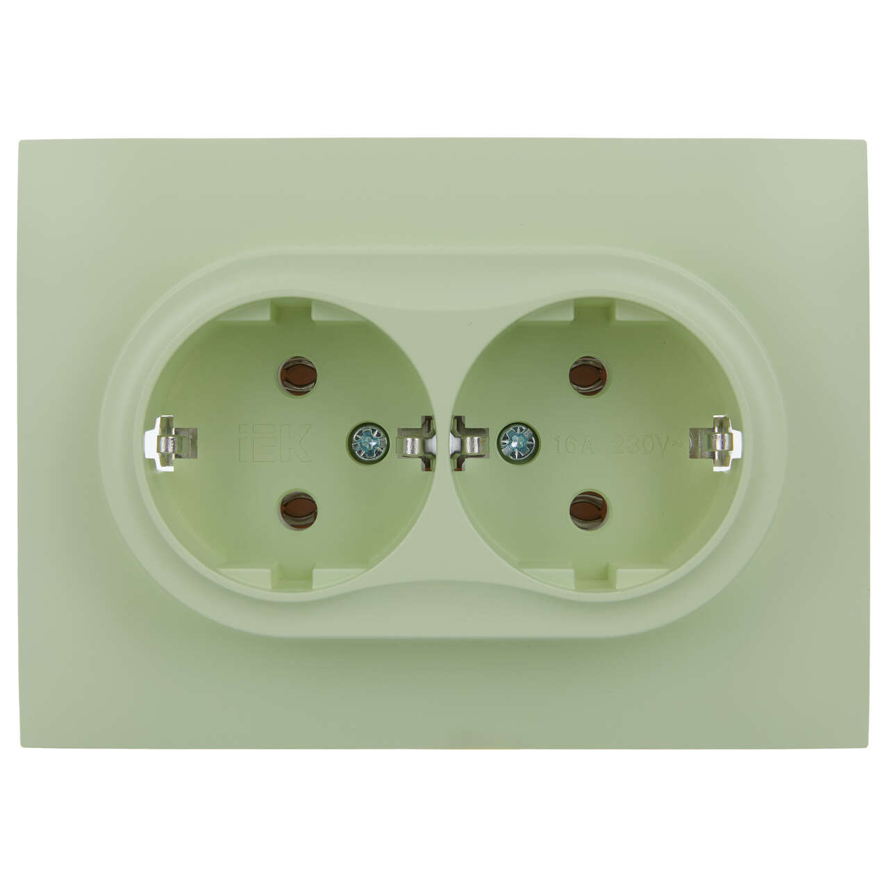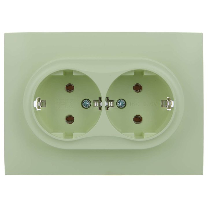 SKANDY Розетка 2-местная с заземлением без защитных шторок 16А в сборе SK-R08G мятный IEK