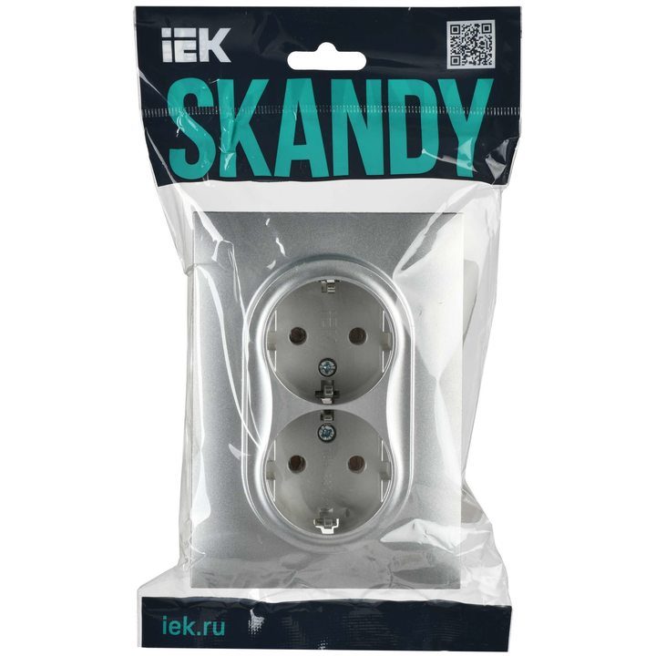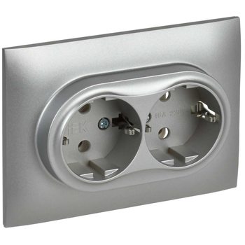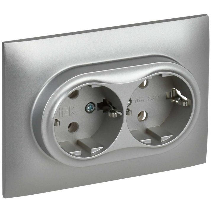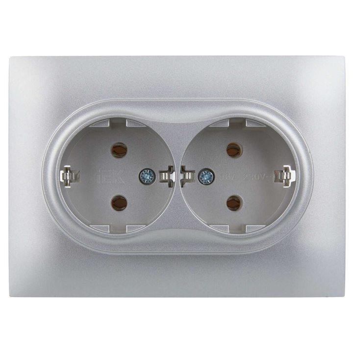 SKANDY Розетка 2-местная с заземлением без защитных шторок 16А в сборе SK-R08S серебряный IEK