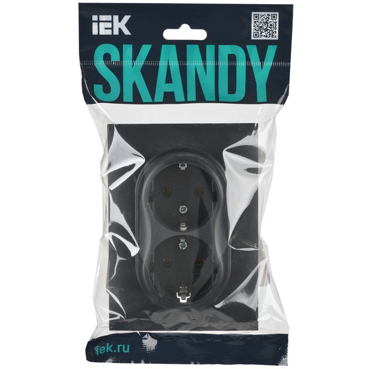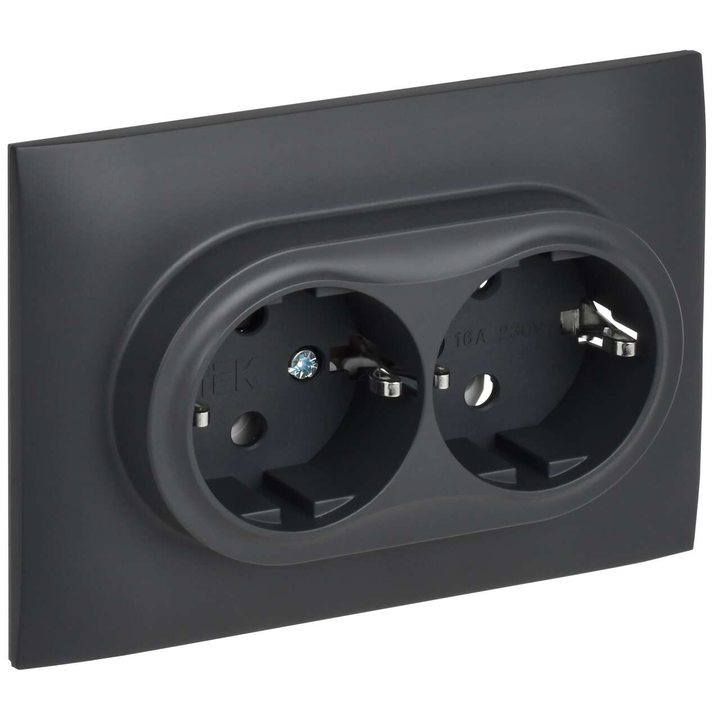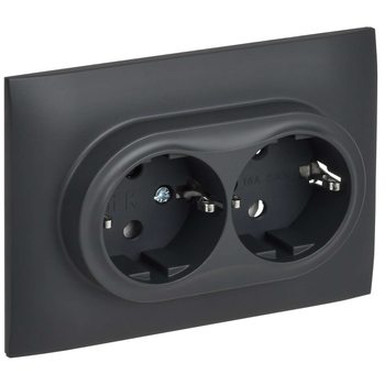 SKANDY Розетка 2-местная с заземлением без защитных шторок 16А в сборе SK-R08T титан IEK