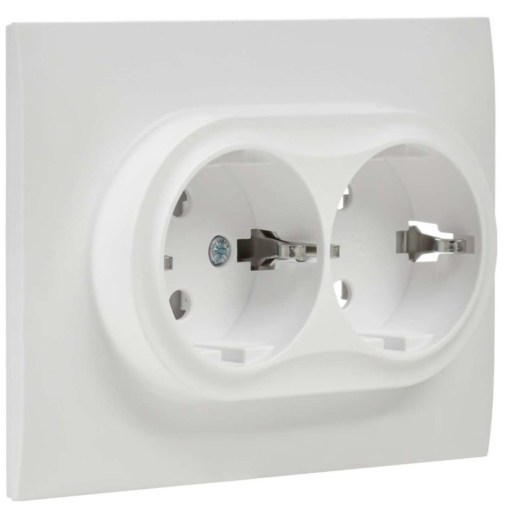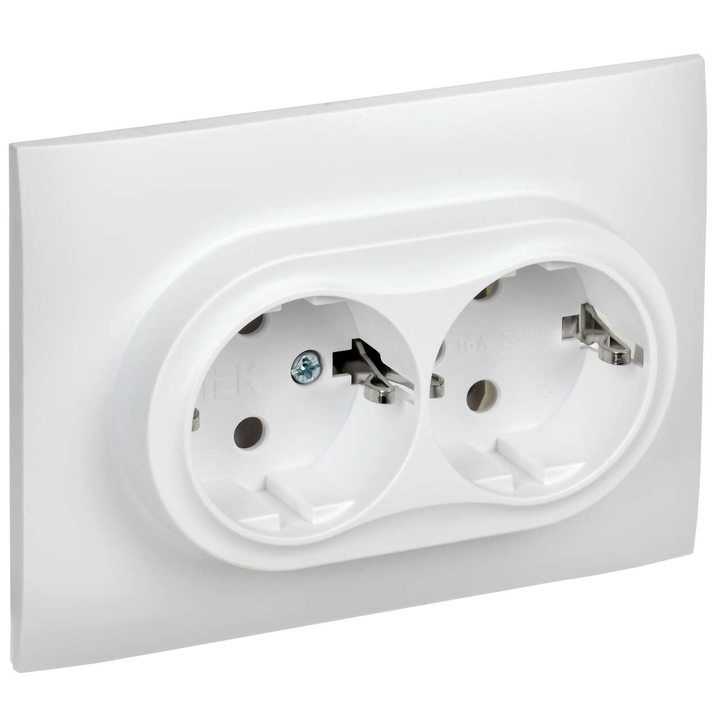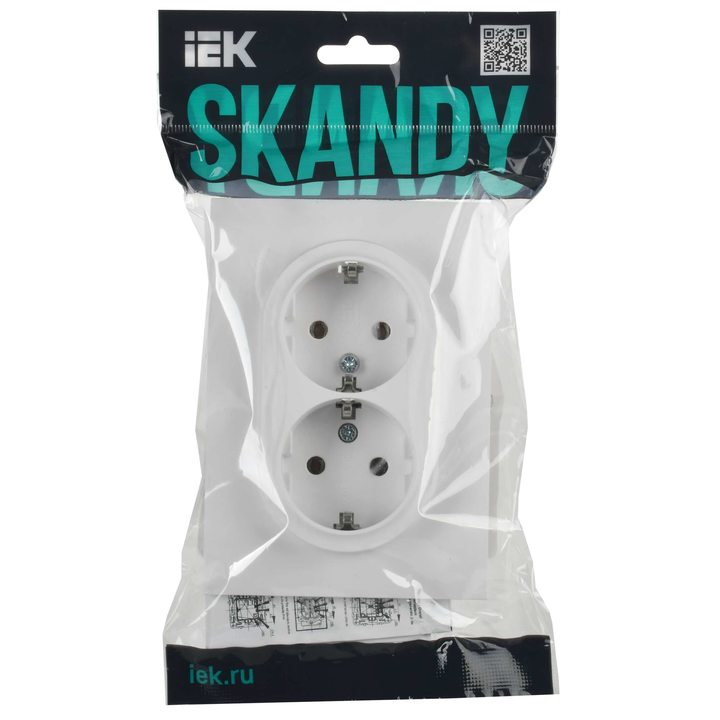 SKANDY Розетка 2-местная с заземлением без защитных шторок 16А в сборе SK-R08W арктический белый IEK