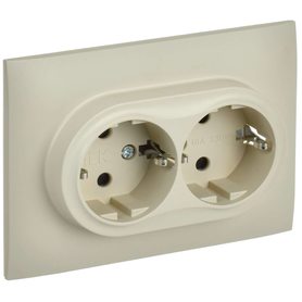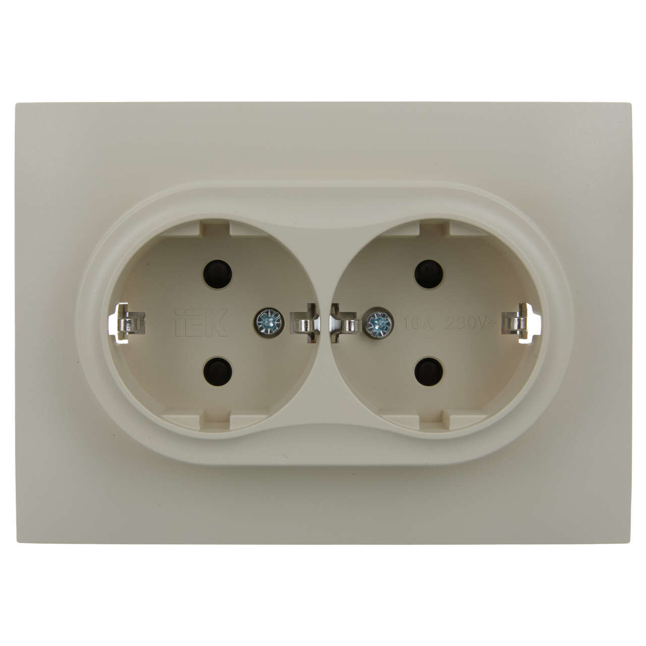 SKANDY Розетка 2-местная с заземлением с защитными шторками 16А в сборе SK-R07B бежевый IEK
