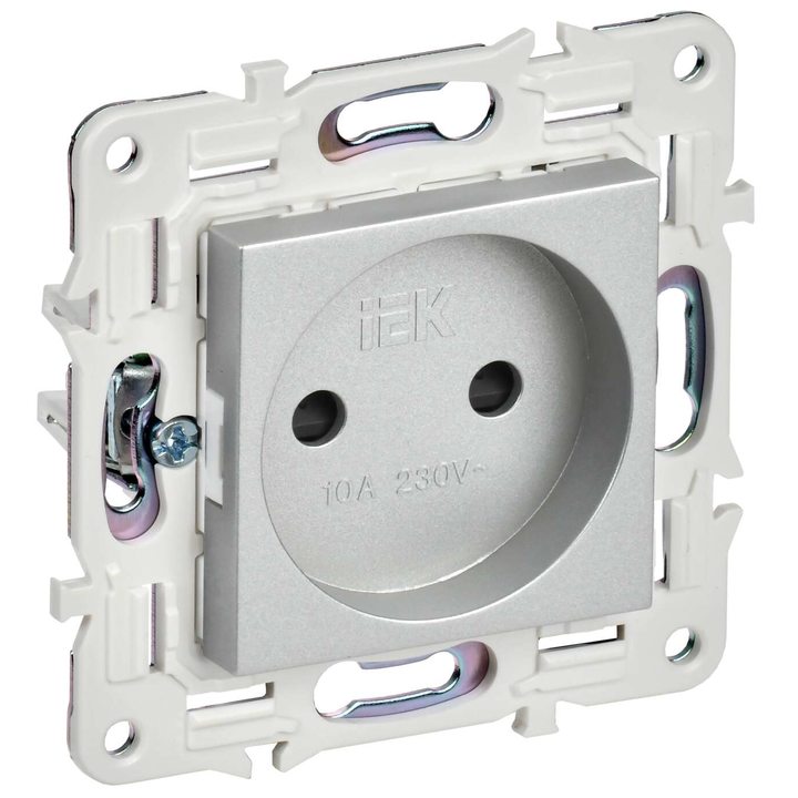 SKANDY Розетка без заземления с защитными шторками 10А SK-R01S серебряный IEK