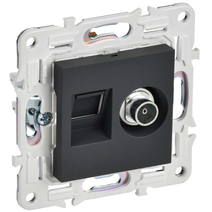 SKANDY Розетка двойная TV+RJ45 кат.6 SK-A15G графит IEK