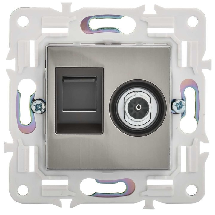 SKANDY Розетка двойная TV+RJ45 кат.6 SK-A15N металл никель IEK