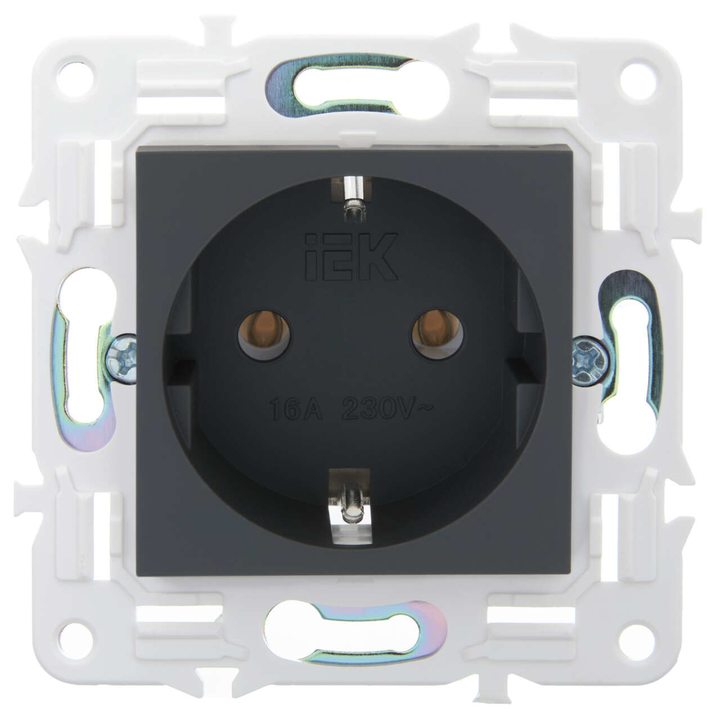 SKANDY Розетка с заземлением без защитных шторок 16А SK-R05G графит IEK