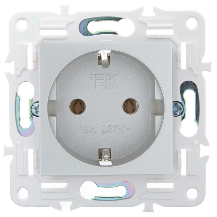 SKANDY Розетка с заземлением без защитных шторок 16А SK-R05S серебряный IEK