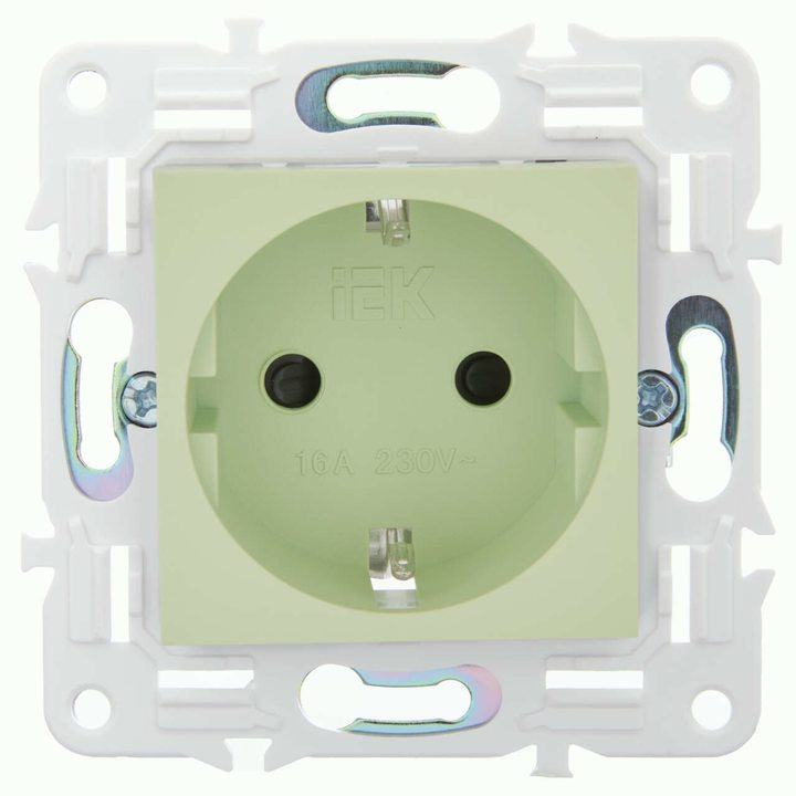 SKANDY Розетка с заземлением с защитными шторками 16А безвинтовое крепление SK-R06G мятный IEK