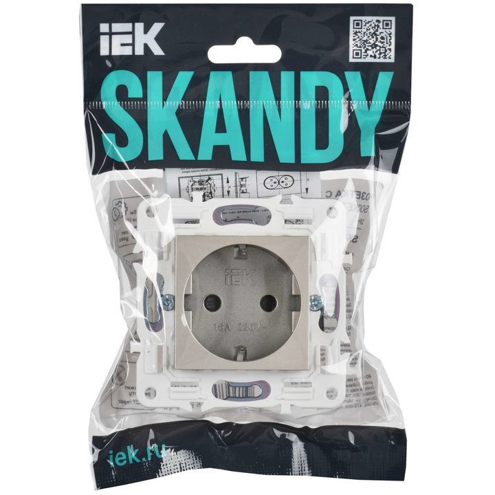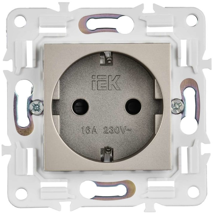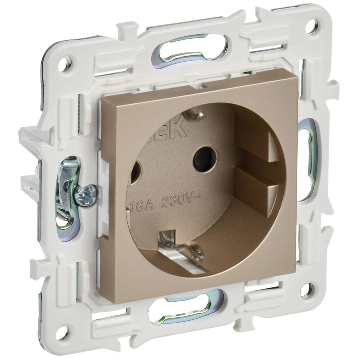 SKANDY Розетка с заземлением с защитными шторками 16А безвинтовое крепление SK-R06Sh шампань IEK