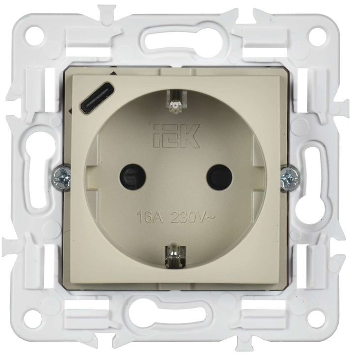 SKANDY Розетка с заземлением с защитными шторками 16А с USB C 18Вт SK-R17B бежевый IEK