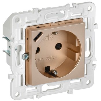 SKANDY Розетка с заземлением с защитными шторками 16А с USB C 18Вт SK-R17Sa песочный IEK