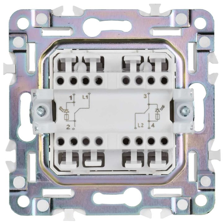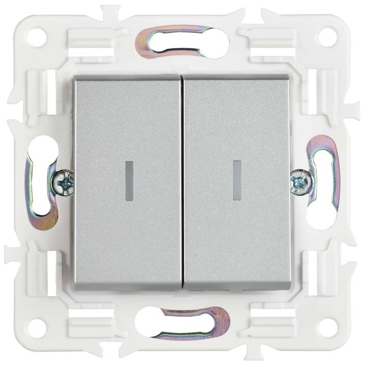 SKANDY Выключатель 2-клавишный проходной с индикацией 10А SK-V10S серебряный IEK