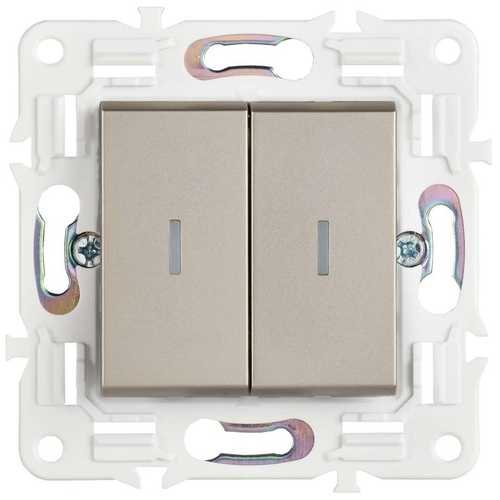 SKANDY Выключатель 2-клавишный проходной с индикацией 10А SK-V10Sh шампань IEK