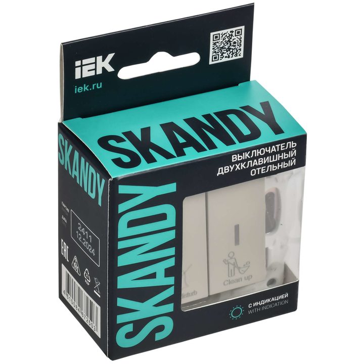 SKANDY Выключатель 2-клавишный с индикацией для отелей 10А SK-V16B бежевый IEK